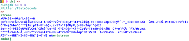We can see that the actual content of the PDF page is encoded with the FlateDecode, which is just a simple zlib encoding algorithm.