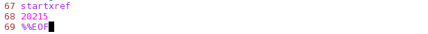 After that, the out.pdf file contains the following xref and trailer sections: