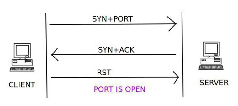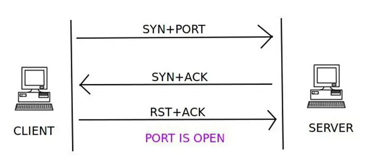 A client trying to connect to a server on port 80 initializes the connection by sending a TCP packet with the SYN flag set and the port to which it wants to connect (in this case port 80). If the port is open on the server and is accepting connections, it responds with a TCP packet with the SYN and ACK flags set. The connection is established by the client sending an acknowledgement ACK and RST flag in the final handshake. If this three-way handshake is completed, then the port on the server is open.