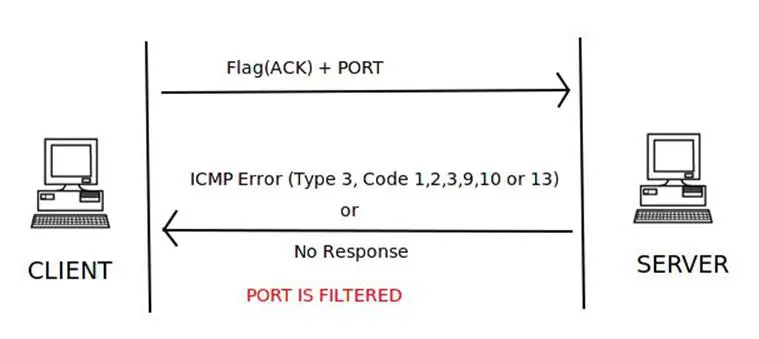 If the server doesn't respond to our TCK ACK scan packet or if it responds with a TCP packet with ICMP type 3 or code 1, 2, 3, 9, 10, or 13 set, then the port is filtered and a stateful firewall is present.
