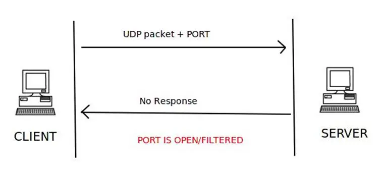 If the server sends no response to the client's UDP request packet for that port, it can be concluded that the port on the server is either open or filtered. No final state of the port can be decided.