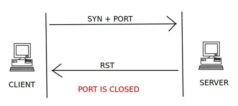 The client sends the first handshake using the SYN flag and port to connect to the server in a TCP packet. If the server responds with a RST instead of a SYN-ACK, then that particular port is closed on the server.