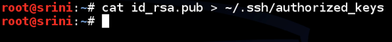 cat id_rsa.pub > ~/.ssh/authorized_keys