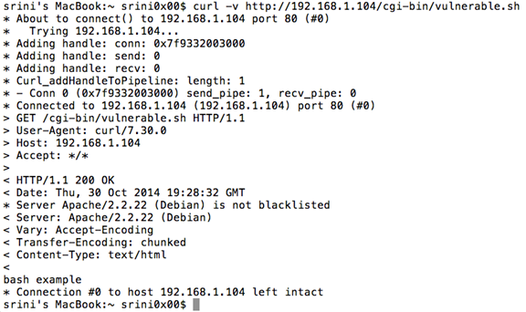 curl –v http://192.168.1.104/cgi-bin/vulnerable.sh