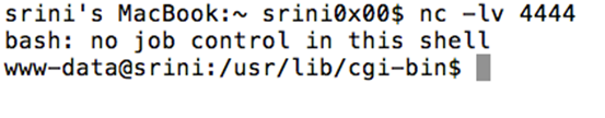 Now, if we go back to the terminal where we started Netcat, we should see a reverse connection shell spawned as shown below.