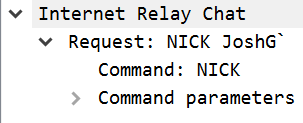 As shown in the image above, IRC is a text-based protocol. A client can send a certain command (like NICK) along with a set of optional parameters. The server will then respond with a response code and optional data regarding the status of the request or containing the information that the user wanted.