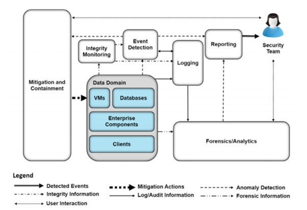 - Forensics/analytics: Providing the ability to probe/analyze logs and machines to get knowledge based on the occurred data integrity events