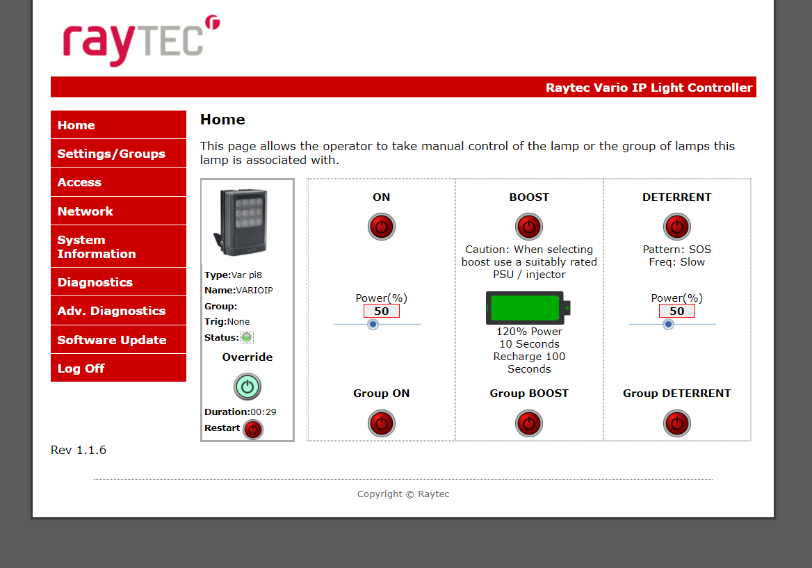 Figure 21: Raytec light controller admin page