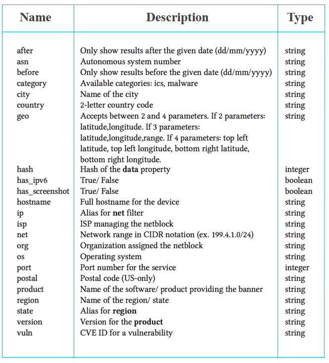 Figure 8: Filters that Shodan provides