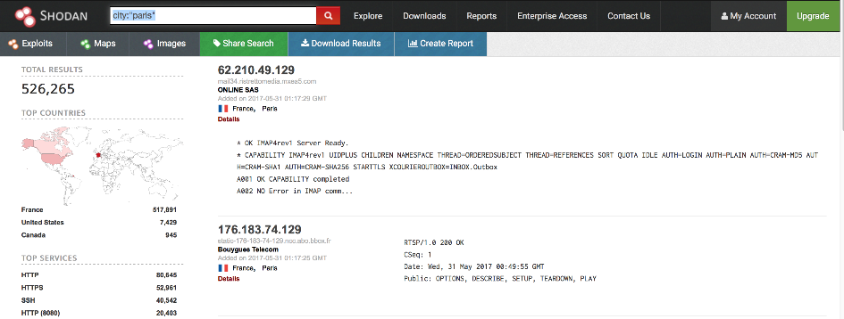This can be possible because of the banners that Shodan can get by scanning the connected devices. It is a little bit like what we can get using a scanner such as nmap or Nessus. [CLICK IMAGES TO ENLARGE]