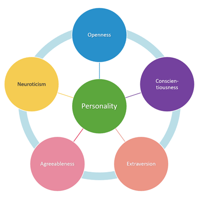 - Openness to experience (inventive/curious vs. consistent/cautious)
