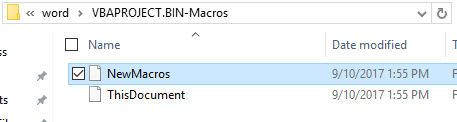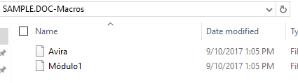 In this example. It dumps the parsed contents of sample.doc in <filename>.macros such as the one below.