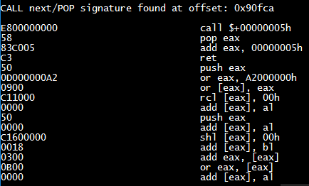 and below are the patterns for CALL POP patterns which gives us an indication of where shellcode might reside.