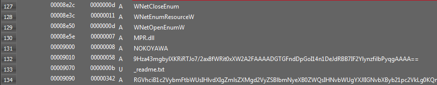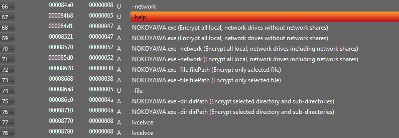 Figure 1: Strings of Nokoyawa ransomware not obfuscated.