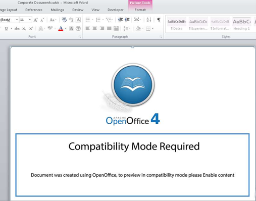 Figure 1: Bandook phishing document used to convince the user to enable the macros.