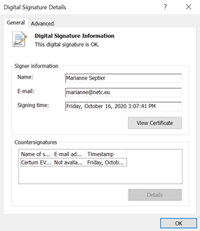 Figure 7: Valid signature information of a newly discovered Bandook sample.