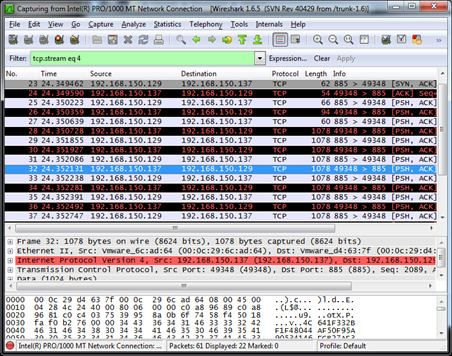 So far we have just a few clues that DarkComet is running on our system, let's perform some checks on our network traffic. For this purpose we run Wireshark: