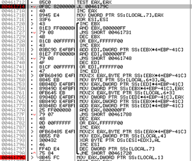 We need to attach to the backdoor, but you'll soon find out that the FWB option prevents the backdoor from working correctly if the debugger is active. We are not going to disable the option because we are pretending to be analyzing a real malware, thus we'll kill the backdoor and run it from the debugger. Just above we have seen that DarkComet probably runs from inside Internet Explorer process, so simply kill it, the backdoor (with my surprise) won't respawn. Then point your debugger to the installation path and run it. For this task I've used OllyDbg v2.0-alpha4 (www.ollydbg.de) and the backdoor file installed in my Documents directory. Start your process and step a few instructions after the entry point, until you get here: