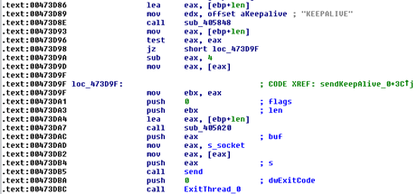 But if you try to use the same password to decrypt the network traffic, you'll just end up with a bunch of garbage. To understand why you'll have to hook into one of the threads that are used to communicate with the C&C server:
