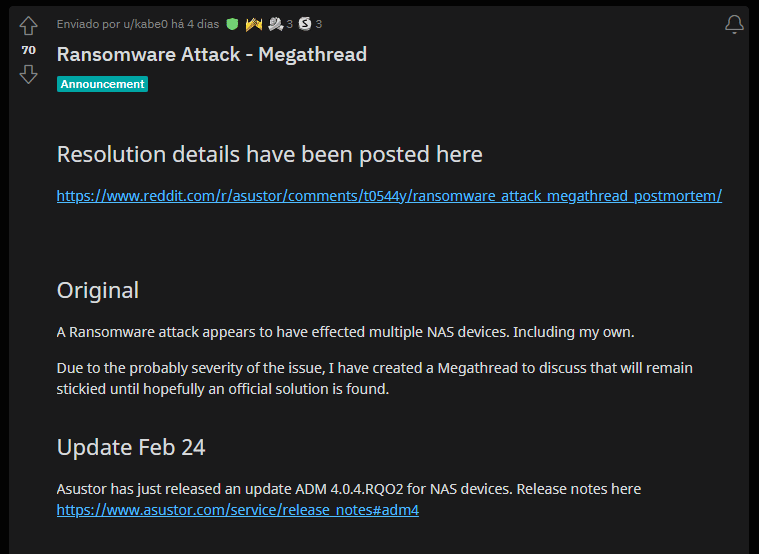 - Ransomware attack megathread, Reddit