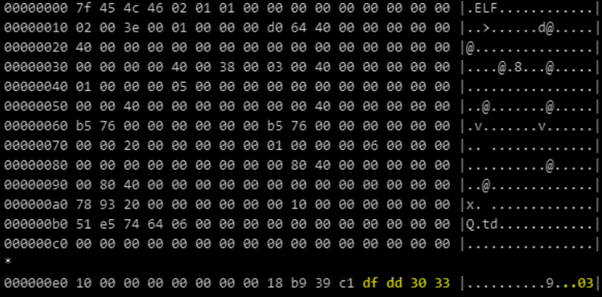 The packer UPX is used to protect this malware, evade its analysis and reduce its size. The UPX header — UPX! (0x21585055) — is modified and replaced with the value 0x3330dddf to make hard the packer identification.
