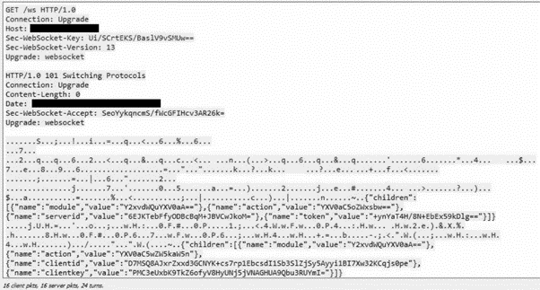Figure 5: Initial WebSocket connection and Drovorub authentication session.