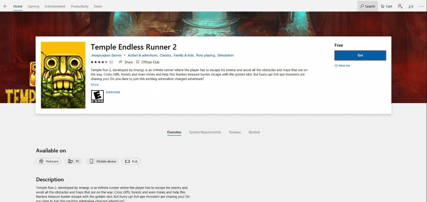 As observed, the malware infection chain starts with downloading a fake application from Microsoft's legitimate store that will drop the malicious payload on the disk — the malware itself. One analyzed application is dubbed "Temple Endless Runner 2," infected with the malicious payload.