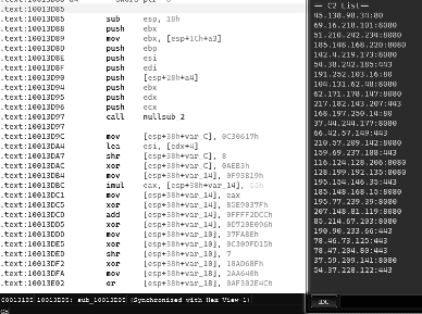 Another well-known technique used within the malware landscape and by Emotet operators is API hashing. With this in place, the name of calls are randomized, and an XOR-based algorithm is used. The strings can be decrypted in execution time (call by call) or via a static method by using the XORed algorithm (reverse operation).