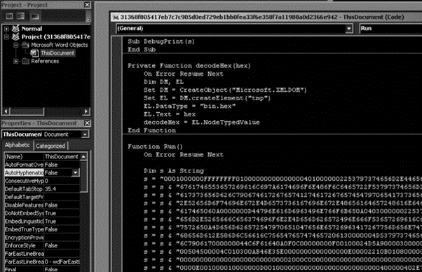 Figure 1: Word doc with the malicious content of the Kraken attack