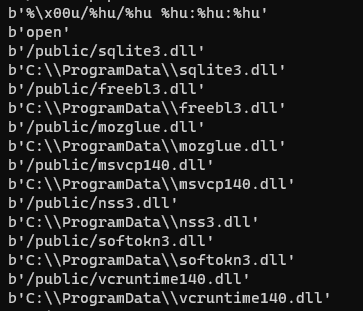 The malware downloads some target DLLs from its C2 server during its execution. These DLLs are the malware dependencies used to support all the malicious operations when data is exfiltrated from popular web browsers. After decrypting the strings, it's possible to see the flow responsible for downloading the DLL files into the "C:\ProgramData" folder.