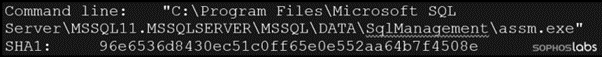 As mentioned, the Mrbminer begins with the Microsoft SQL Server (sqlservr.exe) process that executes a file called assm.exe, the trojan downloader from Figure 3.