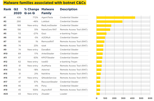Figure 1: Malware families associated with botnets C&C — Q2 2020 (Spamhaus) — #15 NetWire