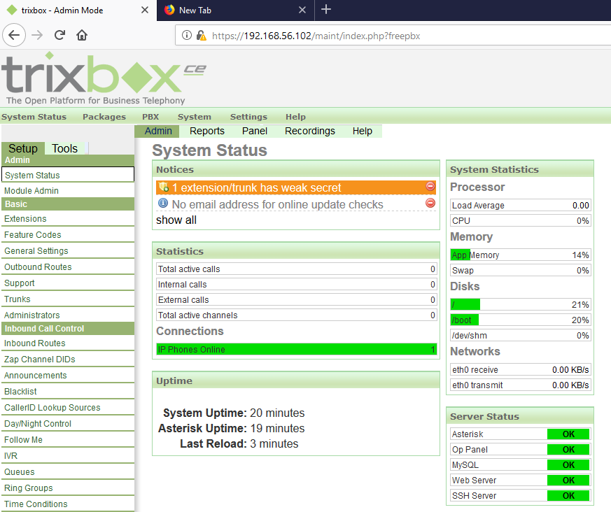 Figure 2: Logging into Trixbox server
