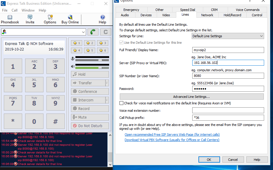 Figure 6: Configuring user extension 8080 on Express Talk Softphone