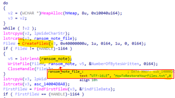 A file called "HowToRestoreYourFiles.txt" is dropped during the ransomware execution with the instructions (ransomware note) to follow to recover the damaged files.