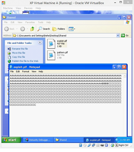 We can see in the above screen shot that the exploit.plf file has A's, B's and C's exactly the way we have given in the Python script.