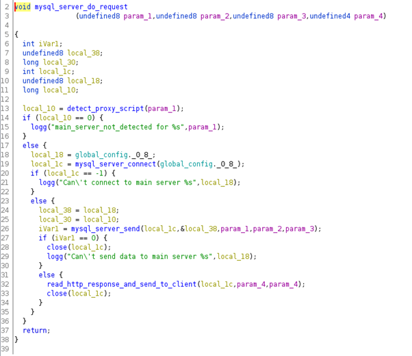 After that, the malicious program will call the “mysql_server_do_request()” function, which is in charge of sending the POST request to the C&C server.