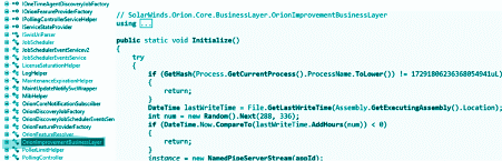 Criminals were able to modify the software and add a malicious backdoor inside the SolarWinds Orion plugin DLL called “SolarWinds.Orion.Core.BusinessLayer.dll” as observed in Figure 1 below.
