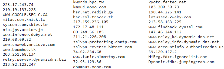 Figure 5: C2 list used by Taidoor RAT.