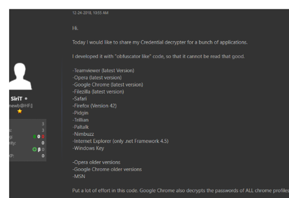 The string “SiriT” — part of the Pastebin username — was the key to collect more information about this threat. This includes messages available on a specific internet forum with details about the target applications used during the malware exfiltration process (see Figure 9).