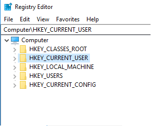 Once you are in Regedit, the registry will appear as a tree structure: