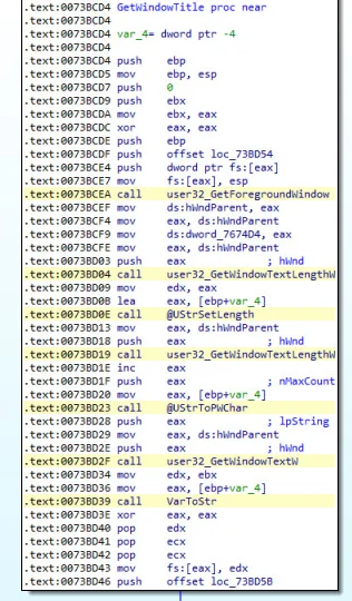 The malware is monitoring the browser’s activity and obtains the title of the browser window comparing it with the malicious strings hardcoded inside the binary. If the obtained string is one of the target banking portals hardcoded, the overlay process starts. This comparison happens continually in a loop.