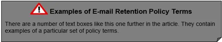 GFI. Email retention policy in the workplace. Retrieved on 21/06/2014 form http://www.gfi.com/pages/email-retention-policy