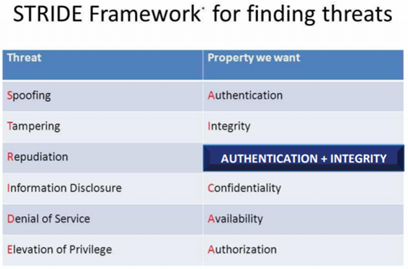 The STRIDE mnemonic overlays threats like information disclosure, tampering and denial of service.