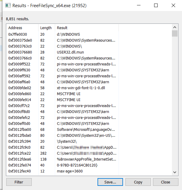 8.3 Lastly, save the string values and analyze for any sensitive information being stored. Check if any unauthorized service is being initiated along with an application. Focus more on files with *.exe/*.php/*.bat file extensions.