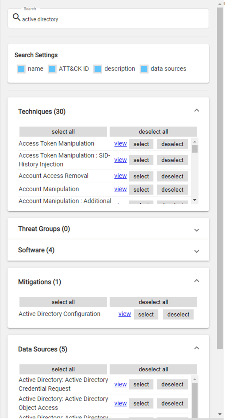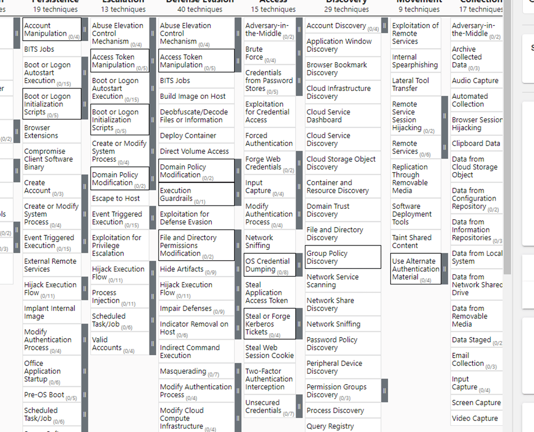 As you can see, the MITRE ATT&CK KB covers a lot of data. Fortunately, we can use some of the built-in tools to narrow down our search for what we need at this particular moment.