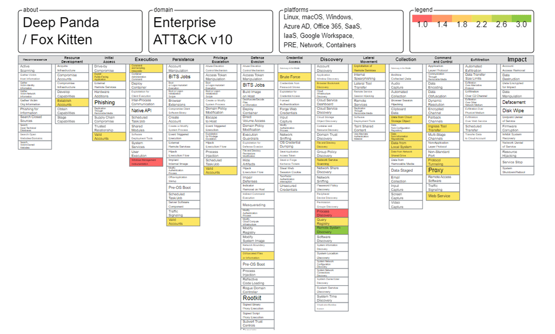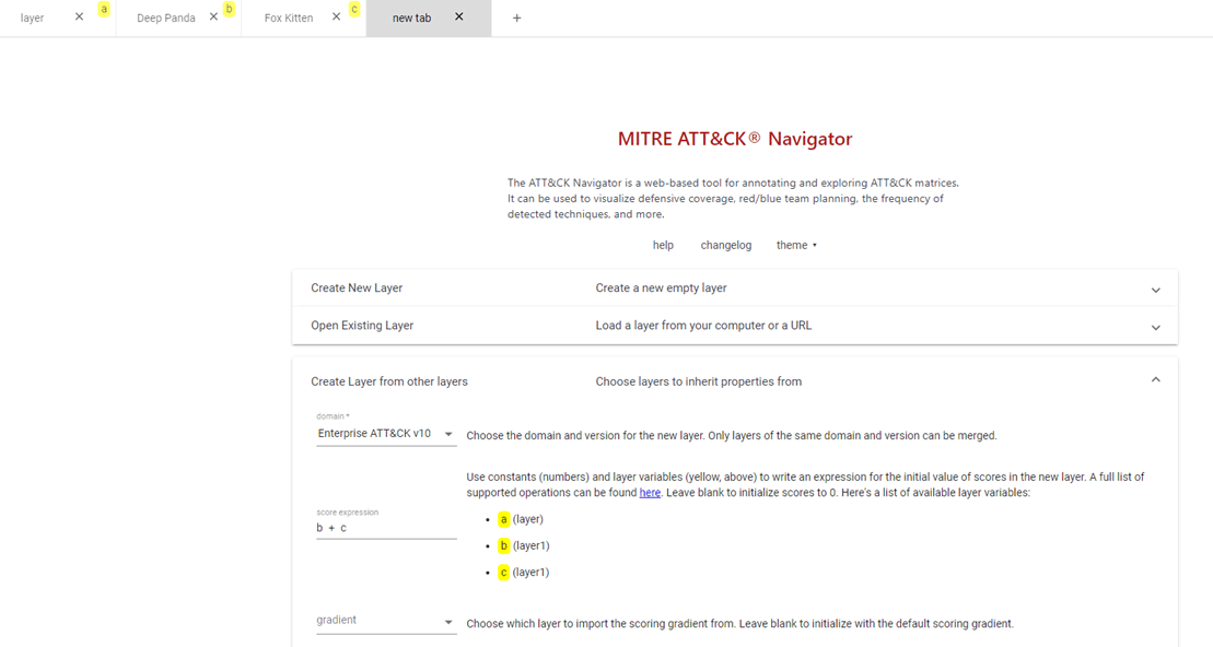 Layers in the navigator can work in similar ways. We can use the navigator to showcase the techniques they each use and which ones they both share, thus prioritizing those shared techniques to maximize productivity. For example, say that we had heard about a new APT group active on the scene, but we were still deep in mitigating attacks from a different APT group.