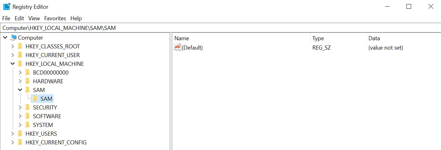 The SAM file is stored HKEY_LOCAL_MACHINESAMSAM within the Windows registry. However, the hashes are only accessible to users with SYSTEM permissions. Several different tools, like Mimikatz and Pwdump, are designed to gain access to these credentials and dump them for the user.