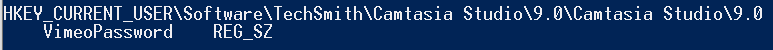 Camtasia is a video editing studio with the ability to upload edited videos to Vimeo. The registry key found above contains the user’s authentication information for a Vimeo account and was found by using the command above to search the HKCU hive. Similar cached passwords could give an attacker access to other useful online accounts.